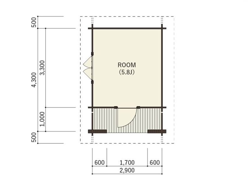 | ハウス部:間口巾290 × 奥行330 × 全高263cm テラス部:間口巾290 x 奥行100cm |